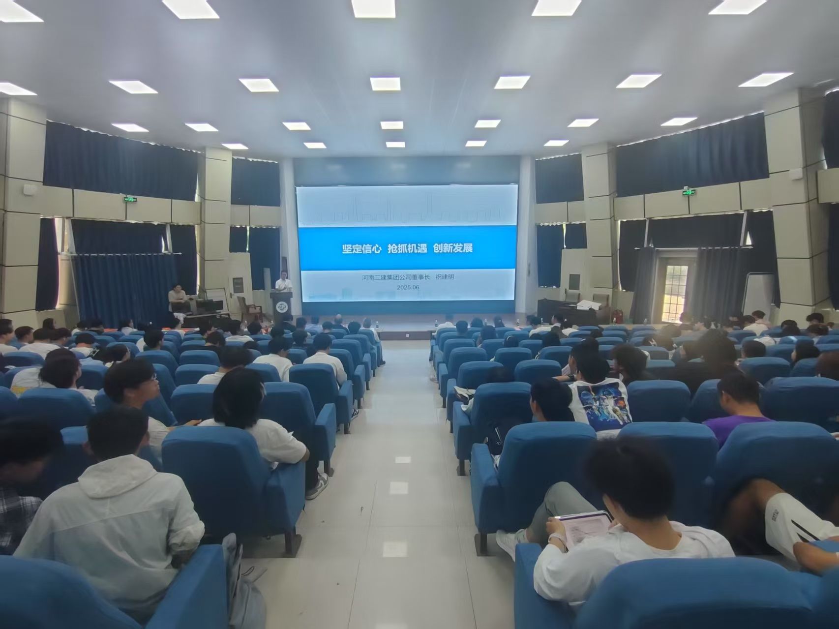 会上,祝建明结合自身创业经历,从建筑行业发展历程与当前现状、产业变革与技术革新、国家战略与海外市场等方面列举大量案例,深入浅出、详细分析了未来建筑行业的发展方向与广阔前景。汤世才围绕建筑行业发展趋势与机遇、行业新增长点探索、核心竞争力提升以及个人成长规划等内容进行了全面深入地讲解,并鼓励同学们在当前产业结构深刻变革的环境下,主动开展交叉学科学习,培养发散思维与创新能力,开辟建筑行业的新天地。